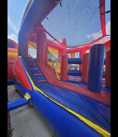 Bring BIG energy to your party with our 5-in-1 Red & Blue Tubular Combo—one of the most popular all-in-one inflatables for nonstop fun! With multiple activities packed into one unit, this combo keeps kids moving, laughing, and entertained for hours.