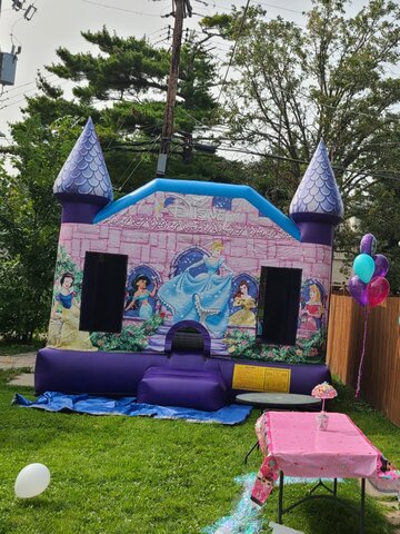 Step into a world of magic and imagination with our Disney Princess Castle—the perfect inflatable for your little royal’s special day! This beautifully designed bounce house features vibrant colors and beloved Disney Princesses decorating the castle walls, bringing fairytales to life.